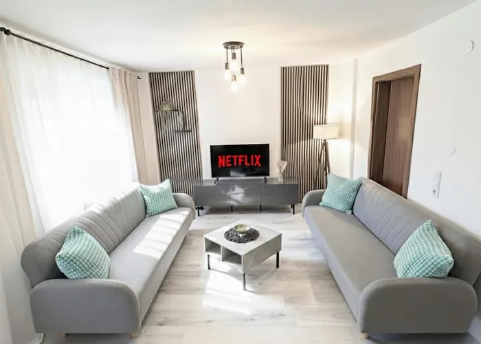 Muel Apartment 1Og Am Dreilaendereck De,Ch,Fr offers self-catering amenities, such as a fully furnished kitchen, and a dining area for guests' convenience. The apartment is merely 650 metres from Duererstrasse bus station. The accommodation opens onto a terrace.